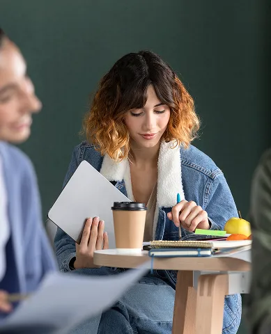 Oferty praktyk i staży Talent Days - studentka uczy się w kawiarni